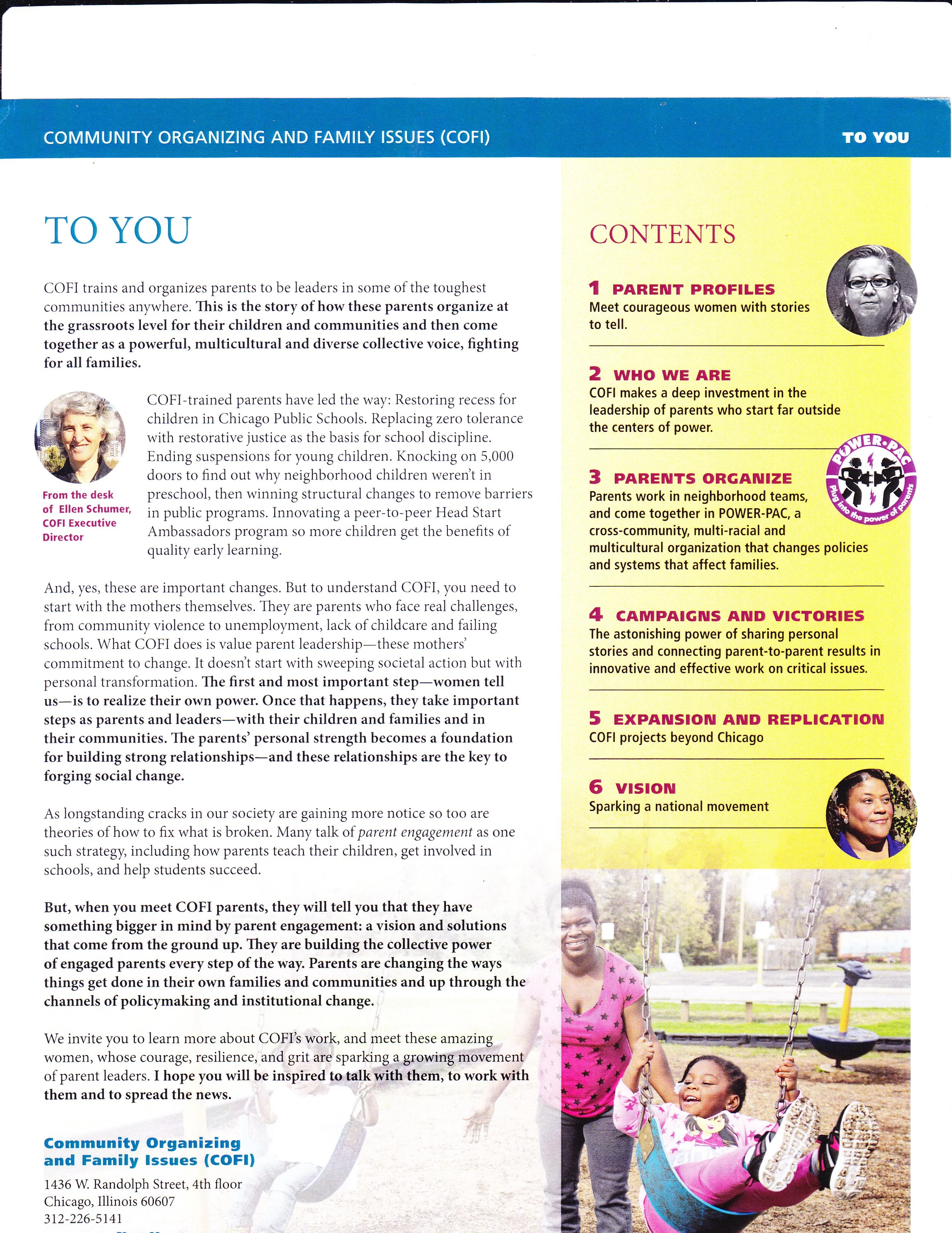 This Media Kit for Community Organizing and Family Issues, a nonprofit, provides a digital snapshot that shares key information about the organization. It is shared with media and other audiences.